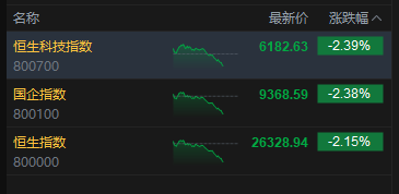 港股午后持续回落,三大指数均跌超2%,科指早盘一度涨近2%。科网股集体回调纵横配资,哔哩哔哩跌超5%,腾讯、小米、快手、阿里跌超3%。